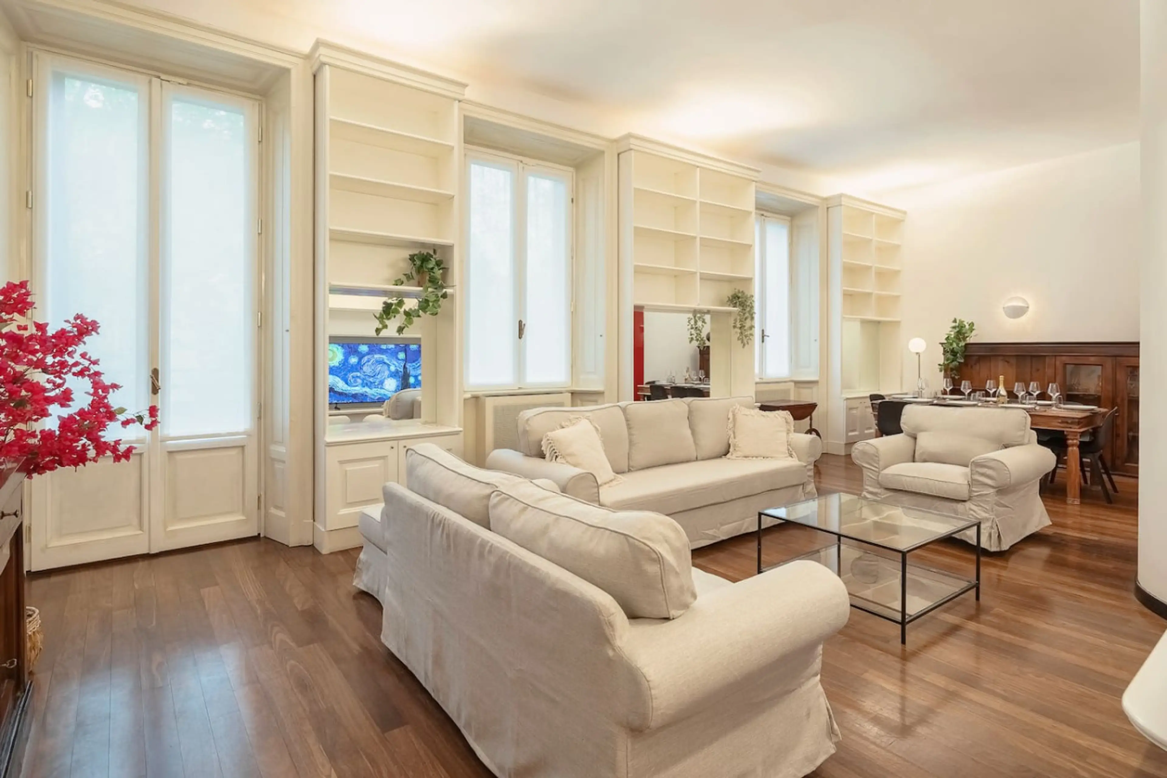 Elegant 200sqm apartment in Via Melzi D’Eril, occupying an entire floor of a historic building with elevator, located next to the Arco della Pace and Parco Sempione. 3 bedrooms with A/C and Smart TVs, 2 full bathrooms plus a guest bathroom, a large and bright living room with 65” Smart TV, and a ful...
